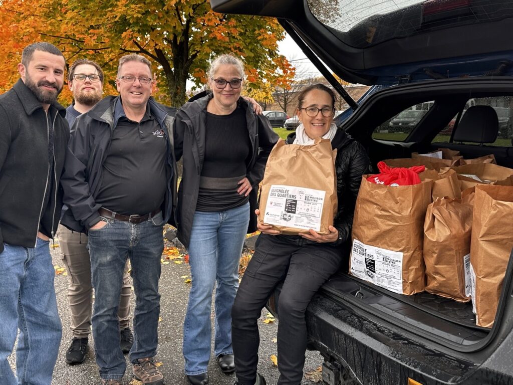 Cette année encore, une bonne partie de l’équipe a uni ses forces et ses sourires pour participer à la Guignolée des quartiers au profit de Moisson Estrie.